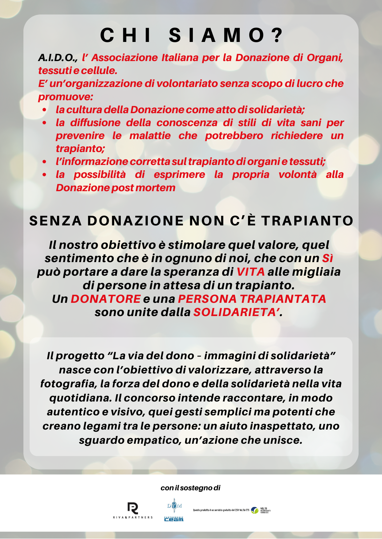 Prenderà il via il 10 dicembre a Torino la mostra fotografica itinerante La Via del dono – Immagini di solidarietà, iniziativa promossa da AIDO Regione Piemonte e nata dall’omonimo concorso dedicato al tema della solidarietà.